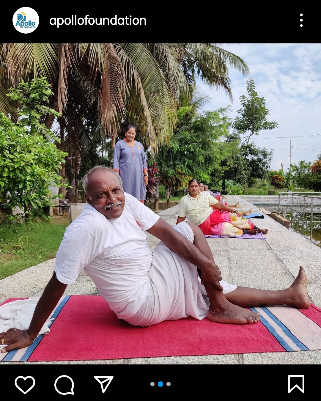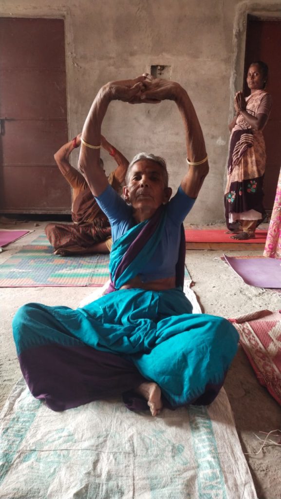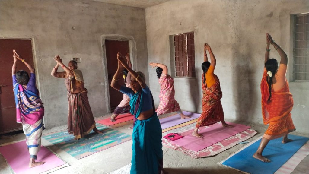 It’s nearing 10 am in Mittapalle, Andhra Pradesh. Under the shade of a tree, two women, P Rajeshwaramma and B Lakshmi Devi, along with other residents from their community are catching up on their plans for the day – questions tend to focus on what’s for lunch and dinner. Soon enough, M Irfan, a yoga teacher with the Apollo Foundation’s Total Health in Aragonda will join them, quieten the buzz and start the daily class.