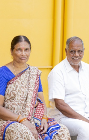 Babu Reddy with his wife Chittamma in a house painted as yellow as the mangoes he grows on his 10-acre farm. Picture by: Raju Patil